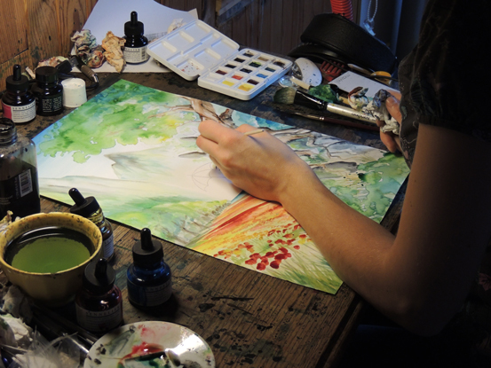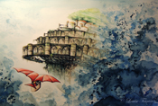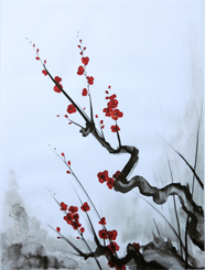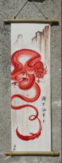 Encres de chine sur papier toilé encadrement banbou et travail en technique mixte aquarelle et encre de chine...